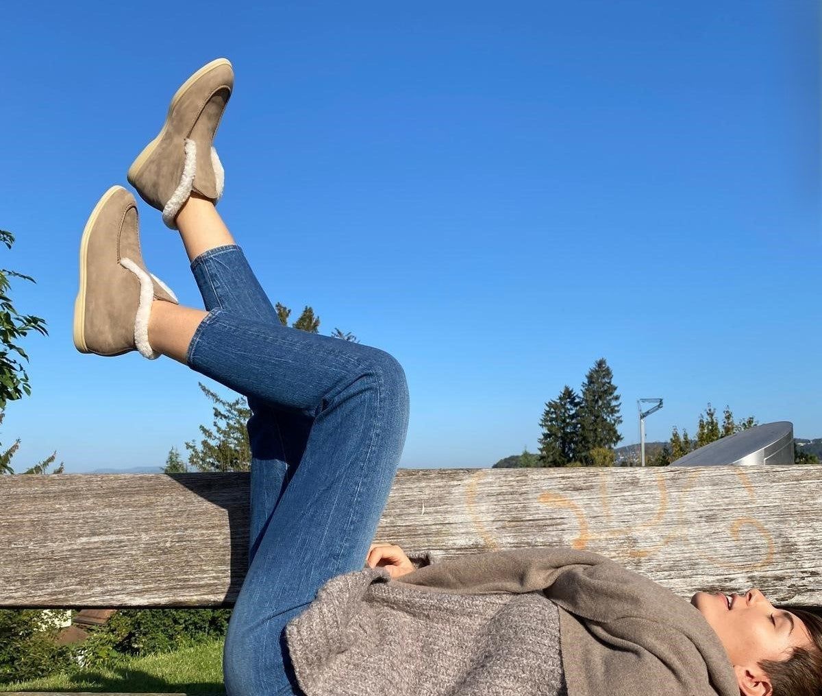 aussergewöhnlich bequem. Einmal angezogen, möchte man nichts anderes mehr tragen. Man geht wie auf Wolken. Mittlerweile habe ich vier Modelle, die ich im Wechsel der Jahreszeiten trage. Entworfen und verkauft werden sie in einem kleinen Laden in Zollikon. Dort hat sich Sandra, die Inhaberin, ihren Traum vom eigenen Schuhgeschäft erfüllt. Sandra ist ein herzlicher und fröhlicher Mensch und ihre Schuhe strahlen diese Lebensfreude aus. Wenn es um nachhaltige Produktion, faire Arbeitsbedingungen und beste Materialien geht, macht sie keine Kompromisse. Ich für meinen Teil habe beschlossen, für meine Füsse keine Kompromisse mehr einzugehen. Bequeme Schuhe sind für mich ein entscheidender Faktor für mein Wohlbefinden.